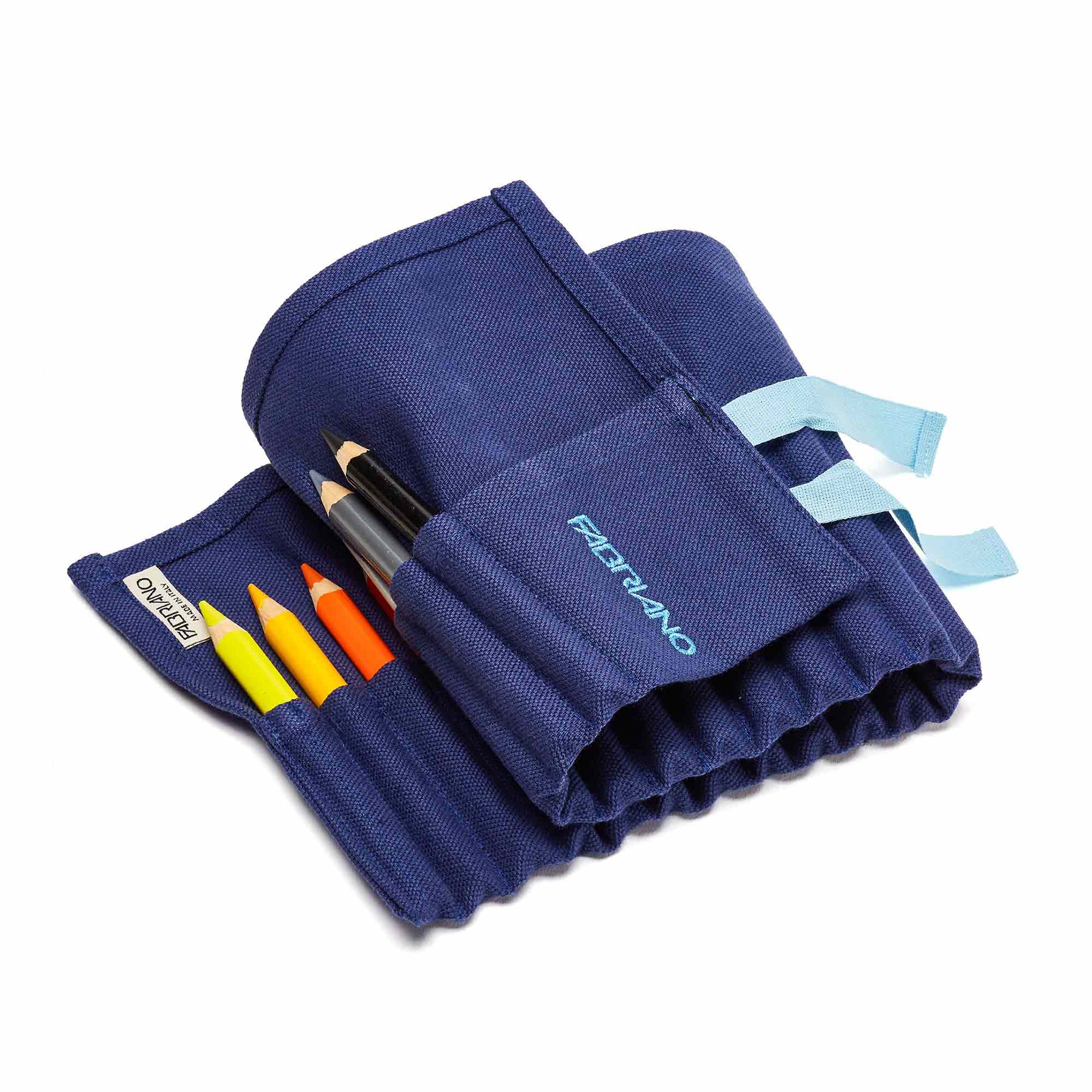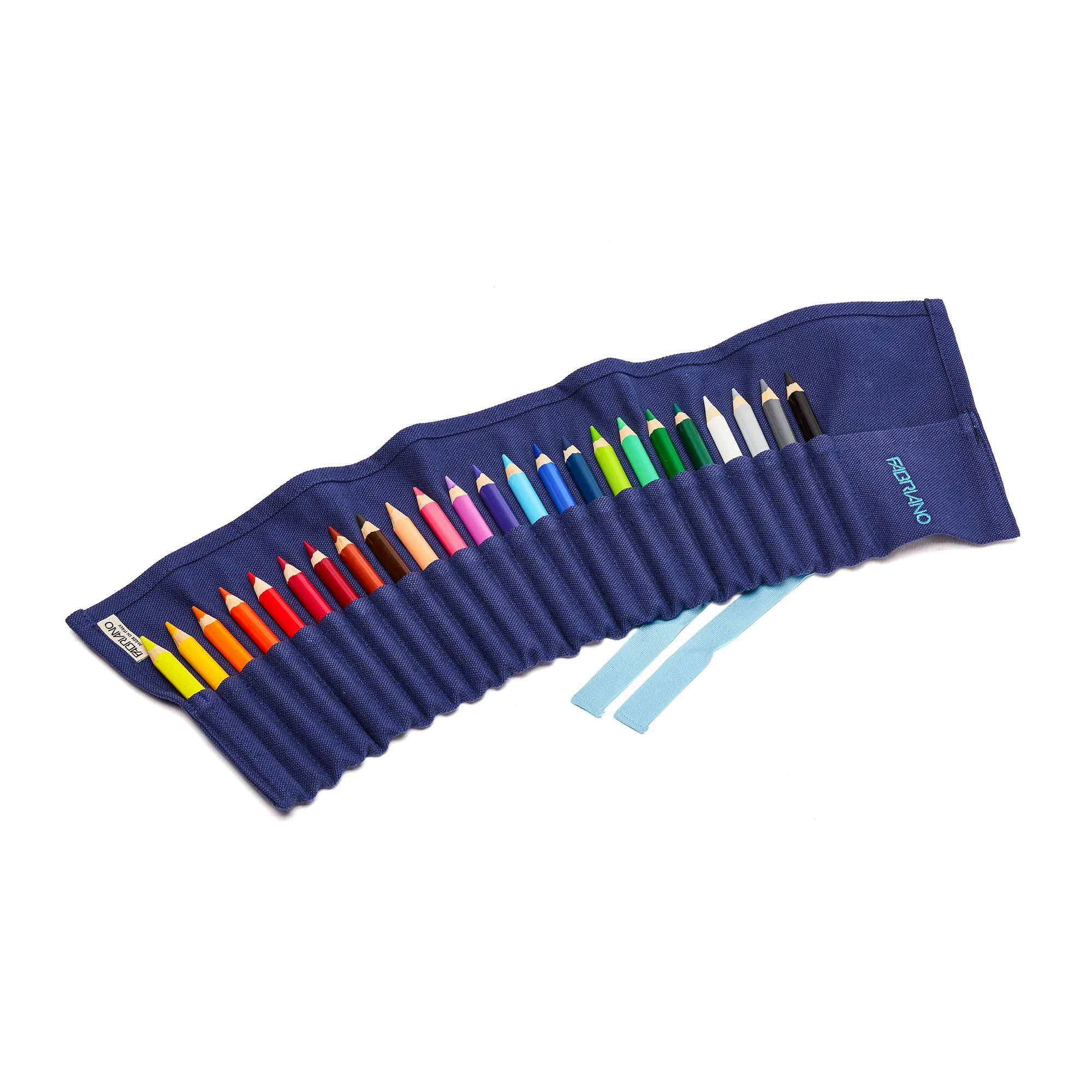 حافظة أقلام مصنوعة من الكتان الناعم تتضمن 24 قلم رصاص ملون.