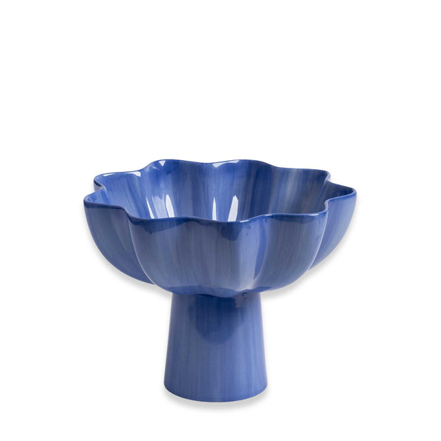 يتميز وعاء التقديم صن بشكله الأنيق مع اللون الأزرق.