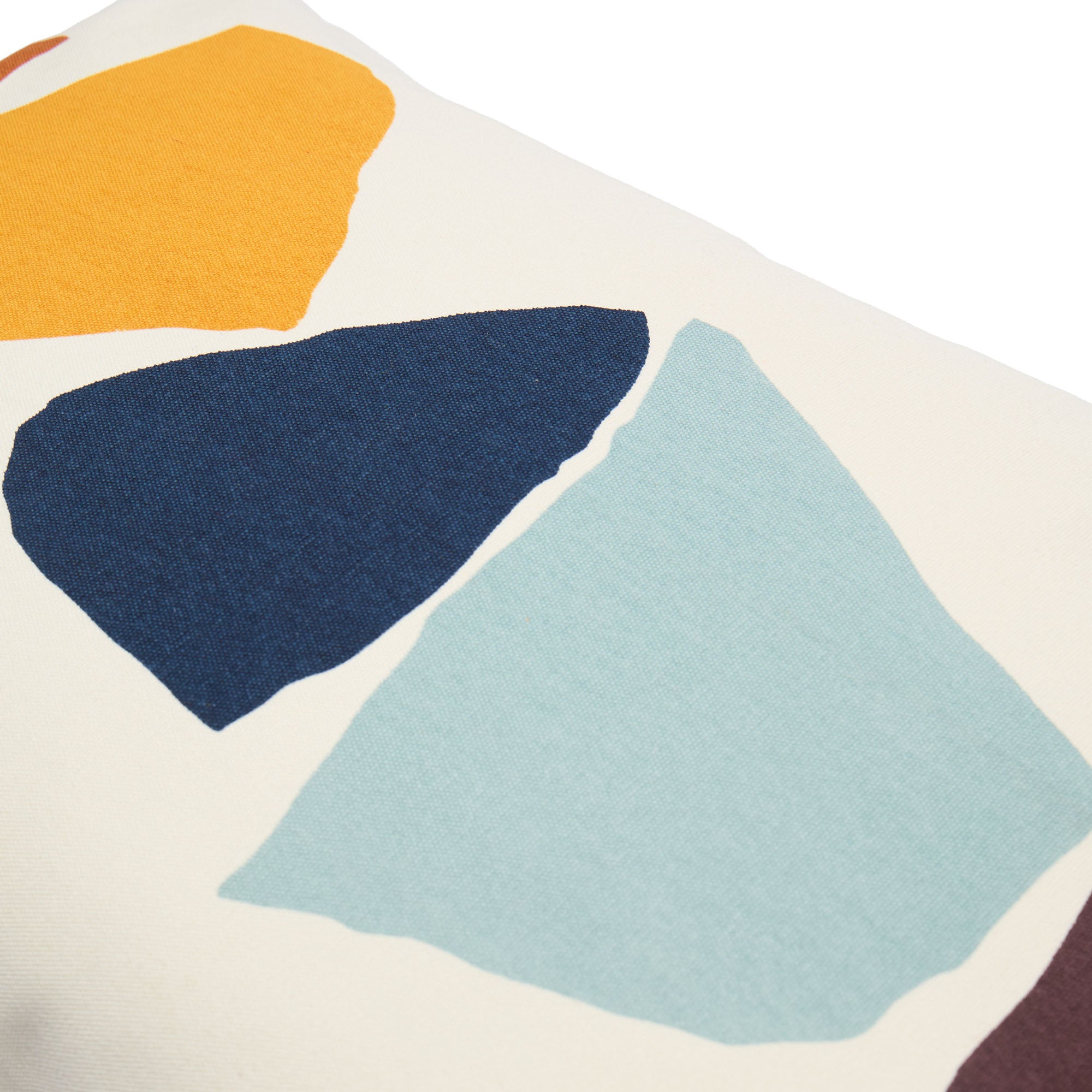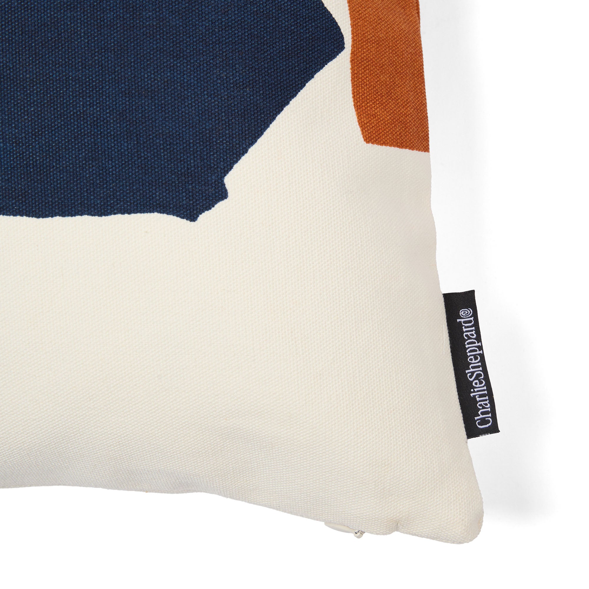 تستلهم هذه الوسادة إلهامها من ممارسات شيبرد في فن الفسيفساء، وتتميز بتصميم تجريدي ديناميكي مطبوع على قطن 100%. وتؤكد الألوان المتباينة من الأحمر المحايد والعميق على التركيبة المتقطعة ولكن المتعمدة، مما يعكس الطبيعة العضوية لعملية شيبرد الإبداعية.