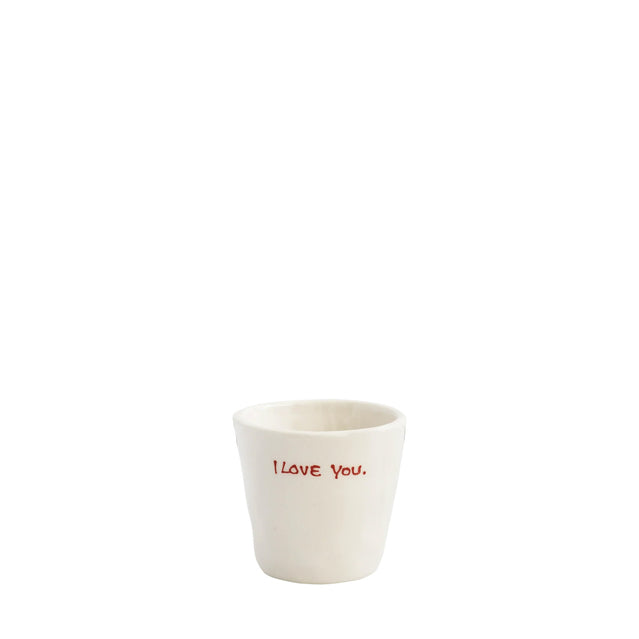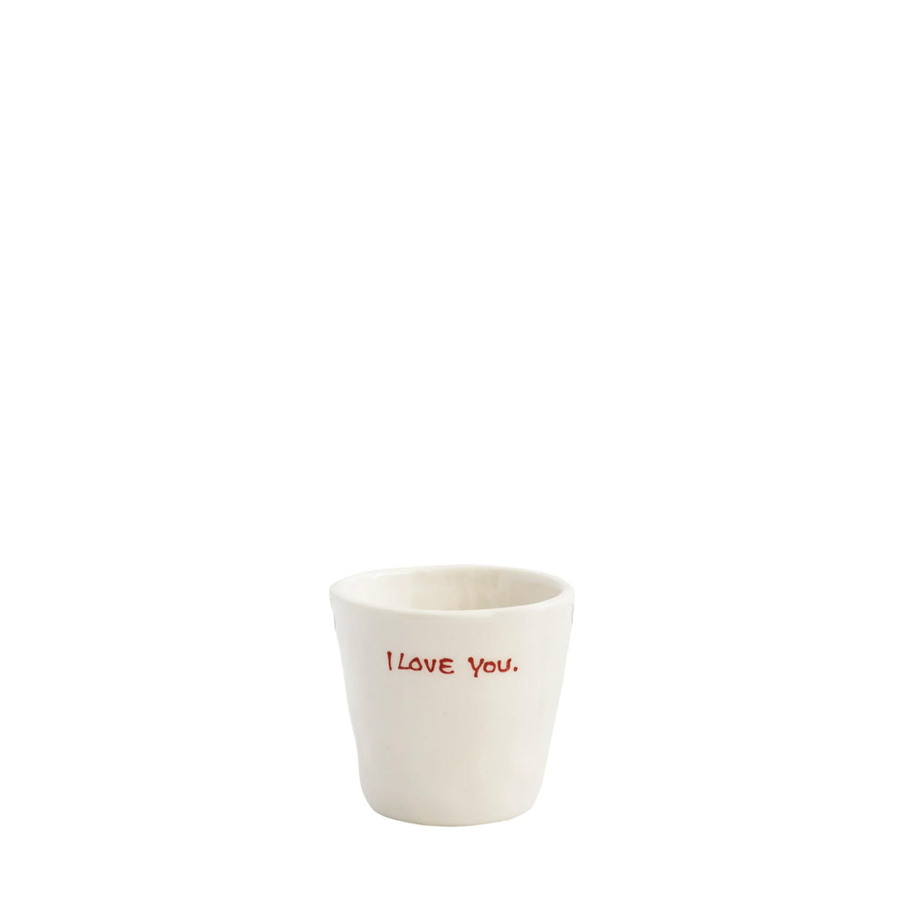 مصنوع بعناية من السيراميك عالي الجودة، ويتميز بنقش كلمة آي لوف يو مرسومة يدويًا، ليضيف لمسة دافئة رقيقة إلى طقوس القهوة اليومية.