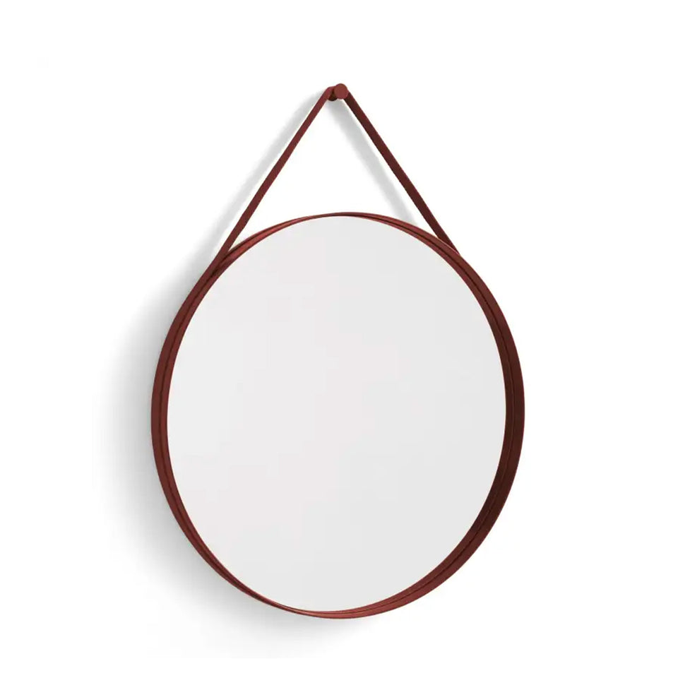 تتميز المرآة بتصميم عملي وبسيط من Hay و حافة مميزة ذات تجويف رقيق يحتوي على حزام منسوج لتعليق المرآة على الحائط.