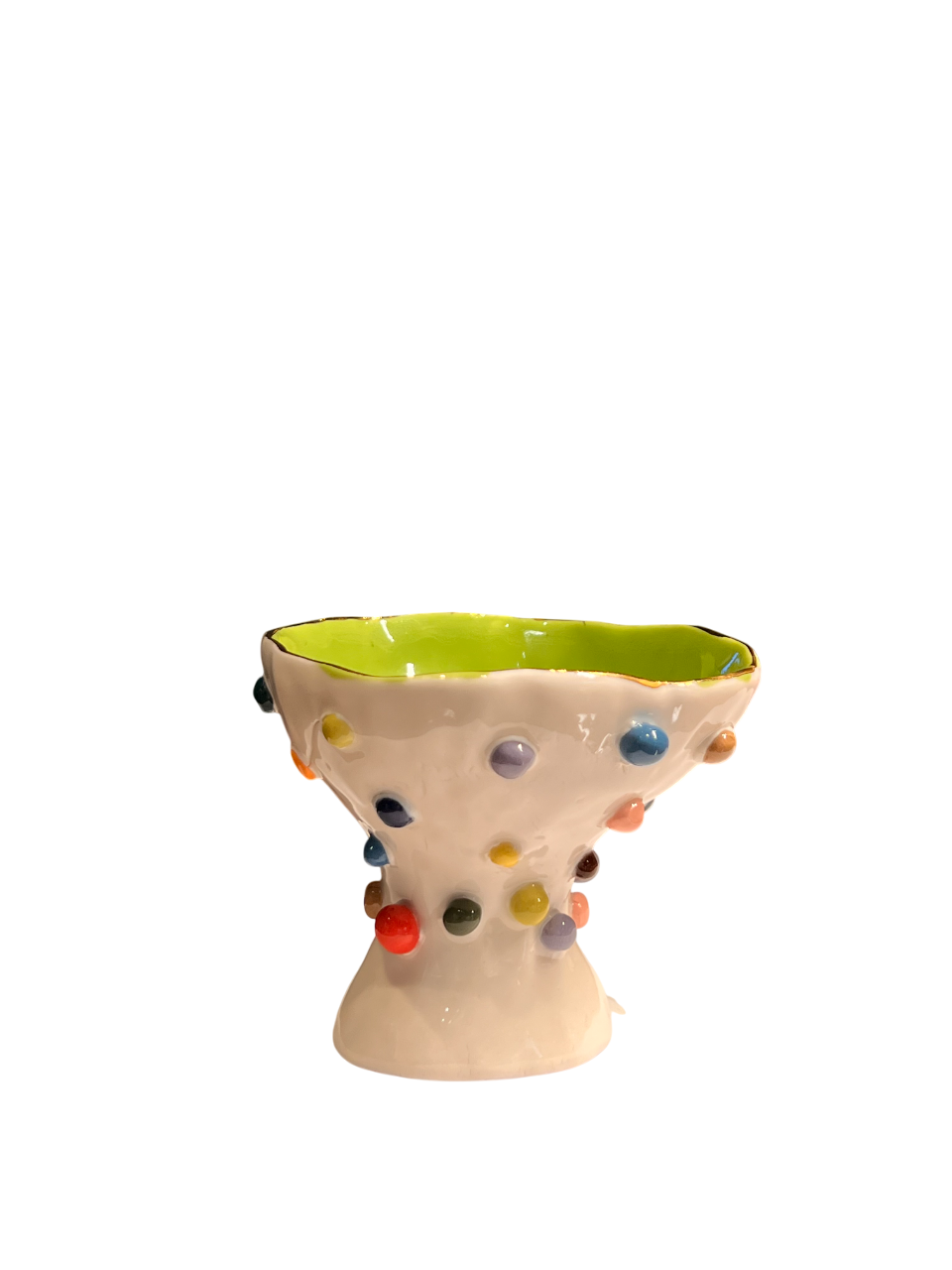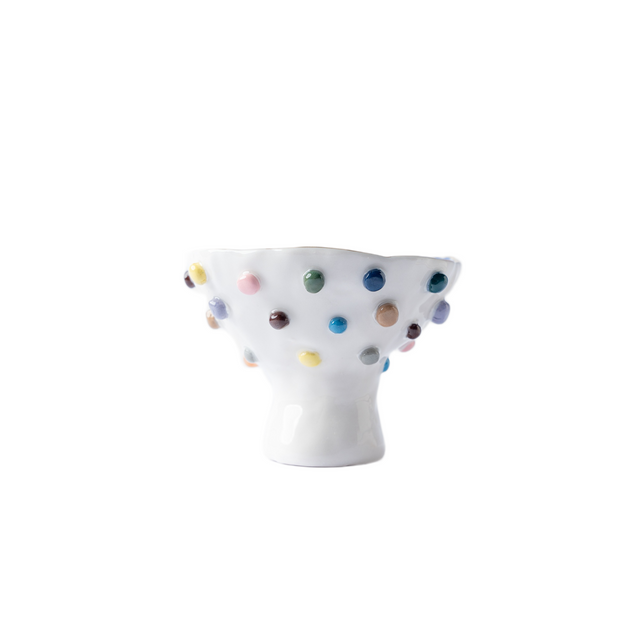 وعاء خزفي ملون مصنوع يدويًا بقاعدة مرتفعة.