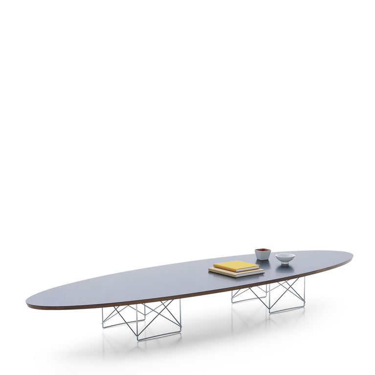 The Elliptical Table ETR, affectionately known as the "surfboard table," is a striking mid-century piece designed by Charles and Ray Eames in 1951. With its elongated oval shape and elegant wire base, the ETR embodies the couple’s philosophy of combining form, function, and playful design. The tabletop features a slim plywood core with a durable laminate finish, while the intricate base of steel wire offers a sculptural and lightweight aesthetic. Ideal for contemporary living spaces, the ETR is both a conversation starter and a timeless statement of design history.