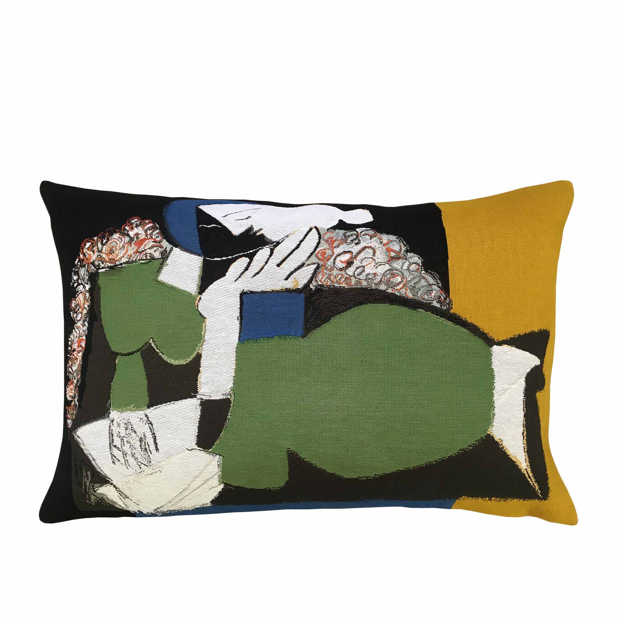 The cushion cover La Liseuse, is a reproduction of Pablo Picasso's painting. This beautiful cushion will give elegance, modernity and an artistic touch to your interior.This cushion is woven using the jacquard technique in their workshop Les Tissages de la Lys located in Halluin, France.