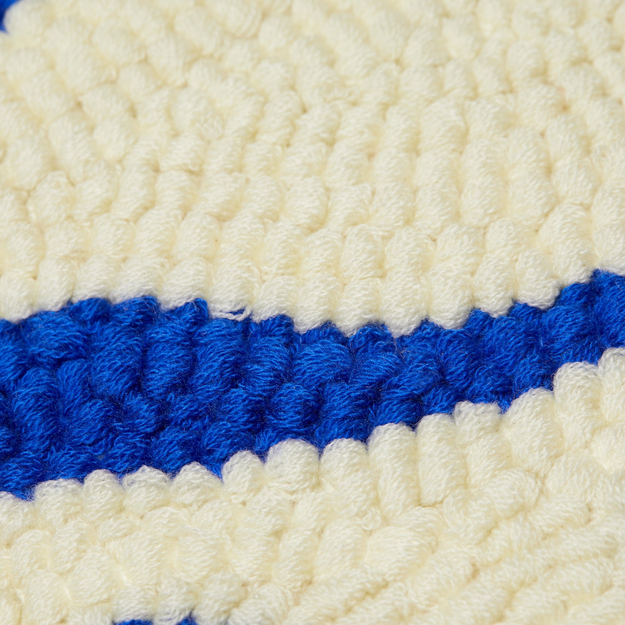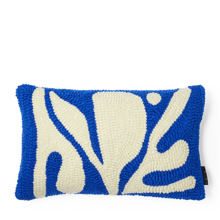 In the classic combination of white and vibrant blue this cushion has been designed to spark joy, bringing a bolt of colour and texture into your interiors.