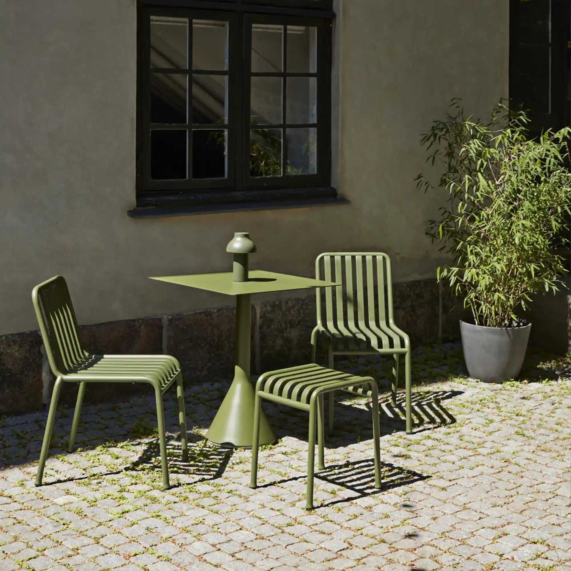 United by a common principle of symmetrical geometry the Palissade collection is engineered to reproduce the same visual simplicity and core strength throughout. Designed in colour and form to integrate effortlessly into a natural landscape or urban setting Palissade is intended to be used over a longer period of time and become more beautiful over the years. The collection is suited to a wide variety of environments from cafs and restaurants to gardens terraces and balconies.