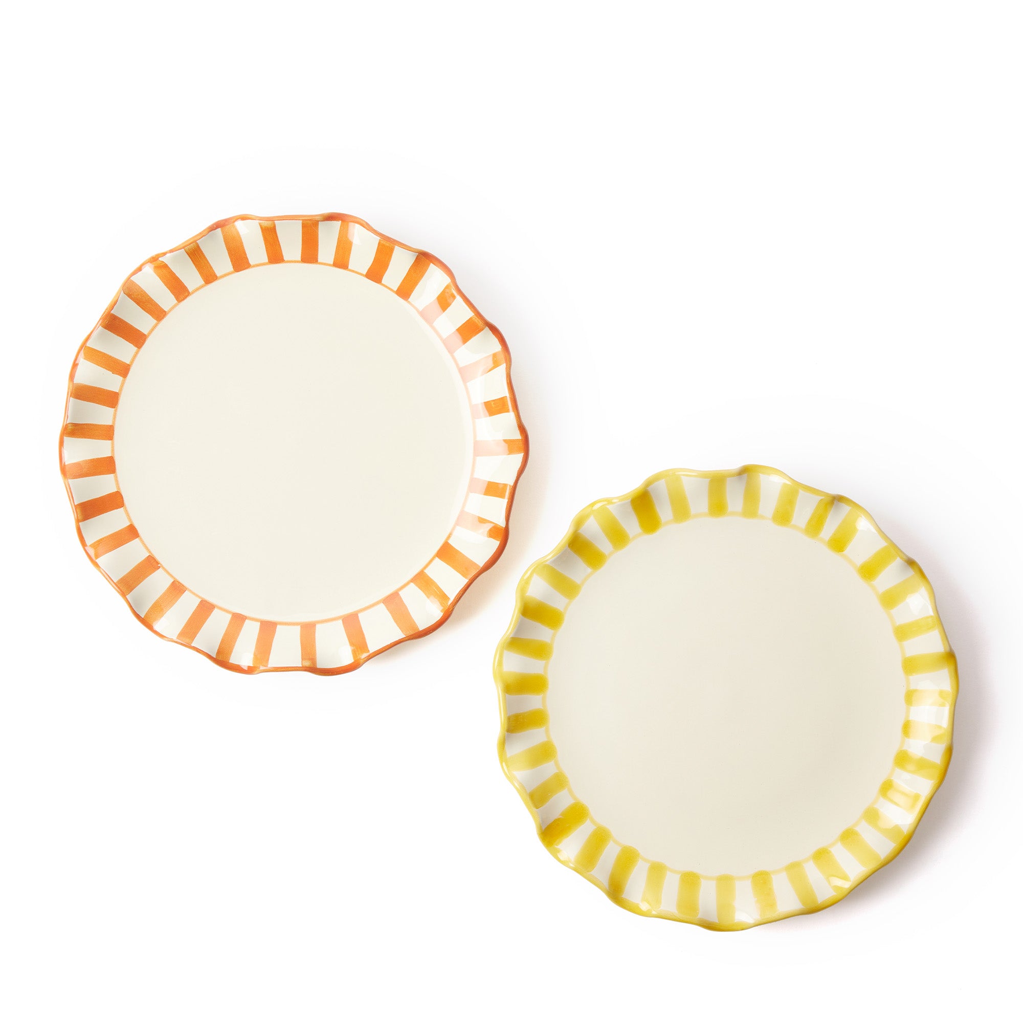 With a pretty waved edge and bright striped rim this playful side plate brings joy to everyday dining.