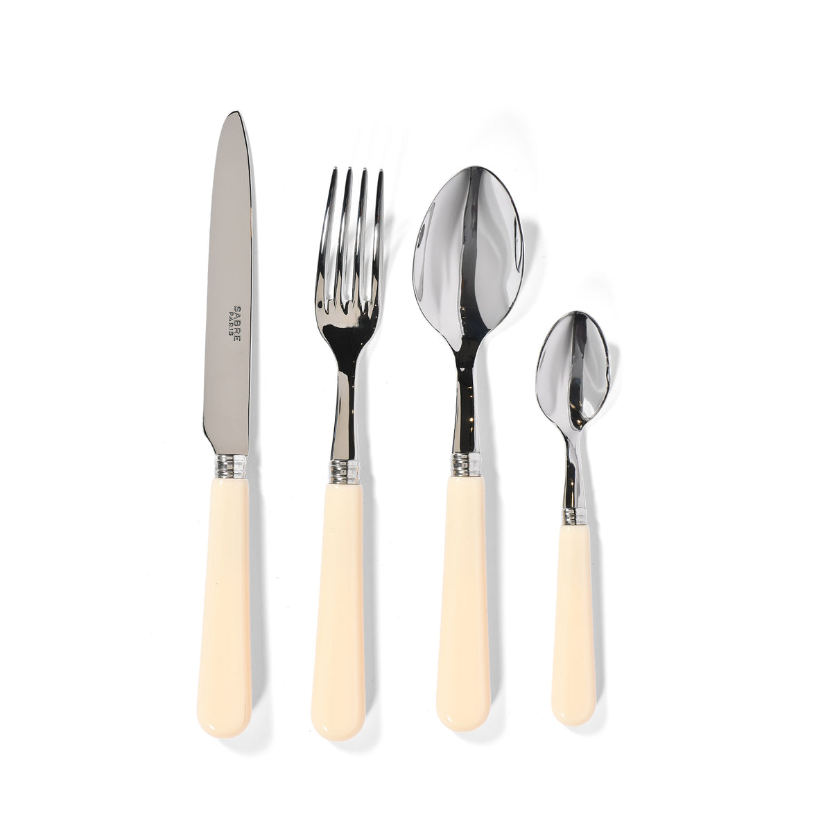 The Sabre 4-piece sets are comprised of a soup spoon, a dinner fork, a dinner knife and a teaspoon. This 4-piece set offers the perfect combination for your day-to-day meals. Also available as part of a 24-piece household cutlery set.