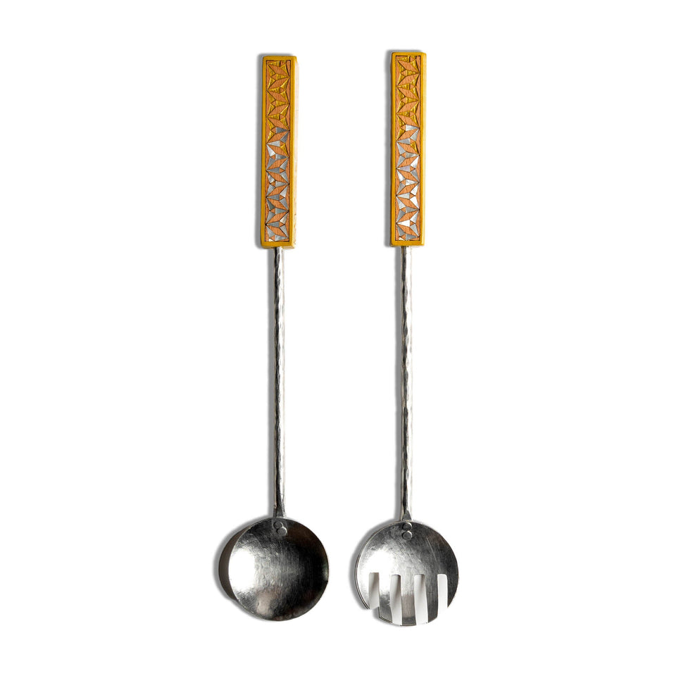 Salad Set with Triangle Decoration on Handles - Yellow